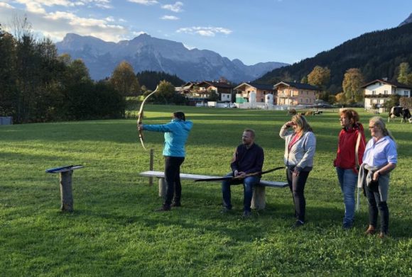 Zielorientierung und Fokussierung auf das Wesentliche verbunden mit jeder Menge Spaß konnte die Gruppe beim gemeinsamen Bogenschieß-Parcours und anschließendem urigem Abend auf der Almhütte probieren und genießen. Zwischendrin war immer wieder Gelegenheit, über mentale Übungen und scheinbar unlösbare Gruppenaufgaben den Horizont zu erweitern und Bewusstsein dafür zu schaffen, was einen erfolgreichen Unternehmer ausmachen sollte.